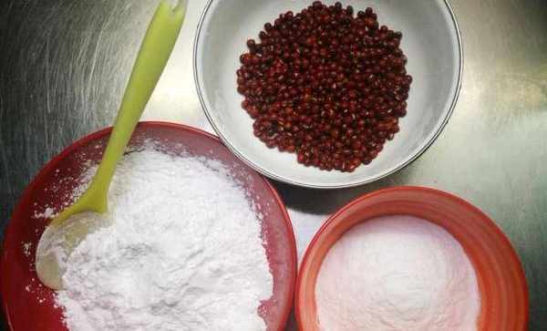 食材:紅豆100g、砂糖70g、紅薯粉100g、清水250ml,步驟: