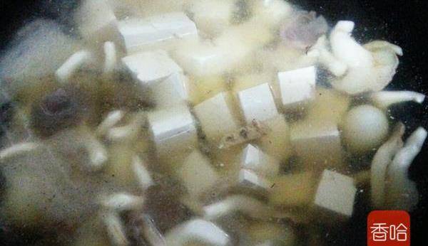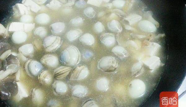 蛤蜊3兩、豆腐小半塊、蘑菇少許、鵪鶉蛋少許、鹽3勺、料酒少許、耗油少許、油少許