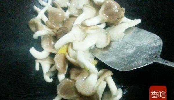 5.將鍋燒熱,在鍋中加少許油,放入薑片和蘑菇