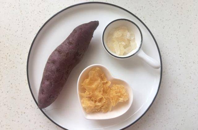 材料:紫薯1個、銀耳10克、黃冰糖8克