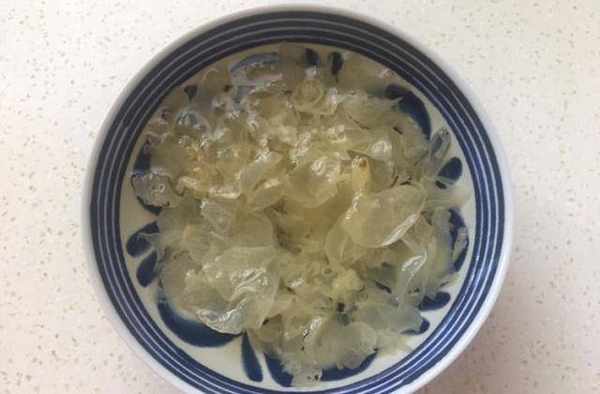 2.銀耳提前用溫水泡發。泡銀耳之前可以先把銀耳撕成小朵再泡,也可以直接買碎銀耳回來泡。一般魚都是晚上睡覺前泡在那裡,早上五點起來燉銀耳,吃早餐的時候就煮好瞭,溫溫的,不燙也不冷,正正好。