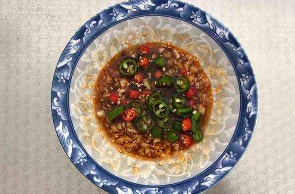 接著我們在裡面放入一些辣椒油和一些醋,醋的量可以多一些,這樣的話吃上去才會更加的酸爽。