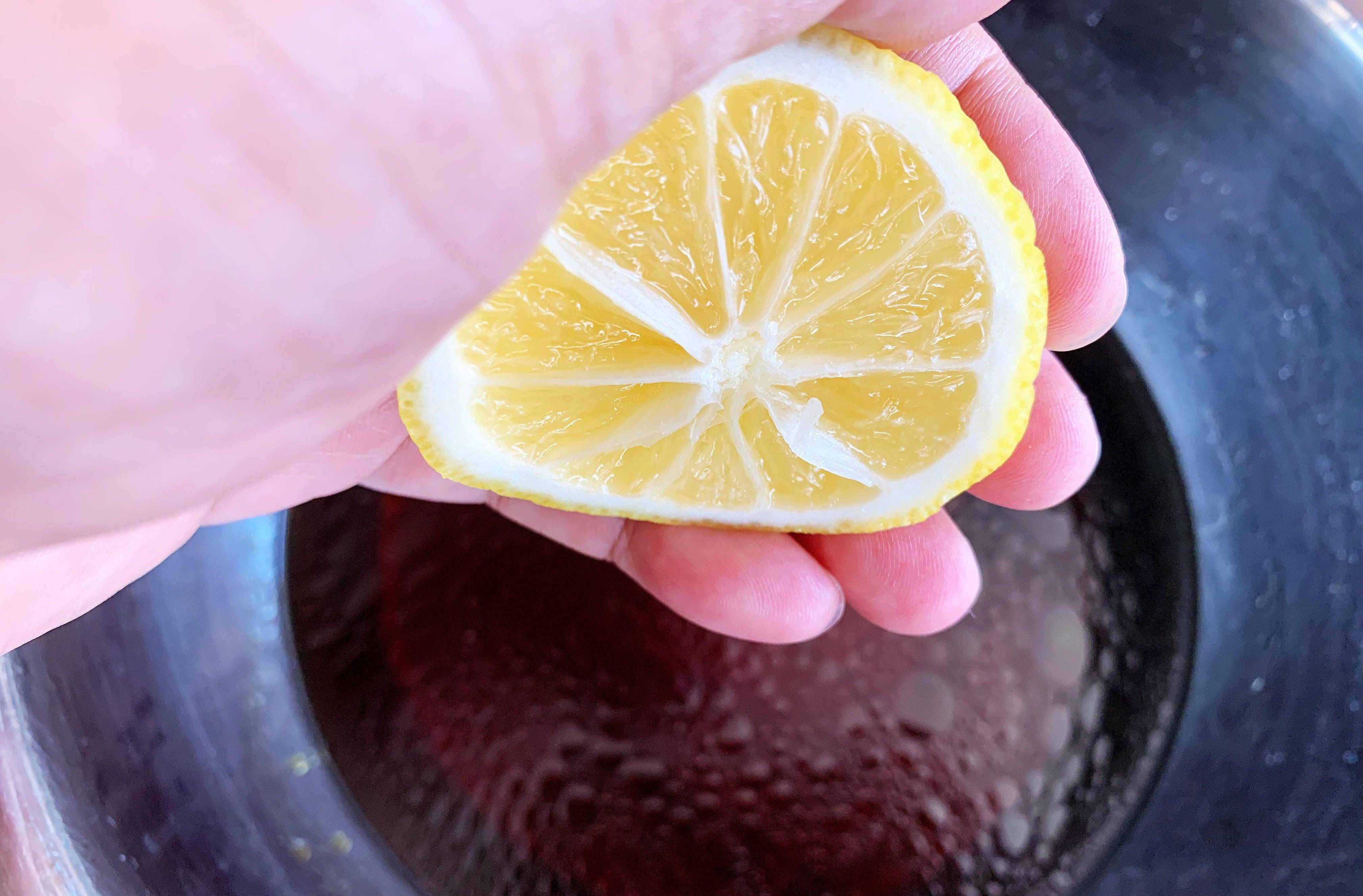 6、往攪拌好的料汁中擠入適量的檸檬汁。