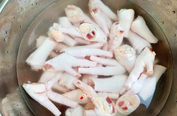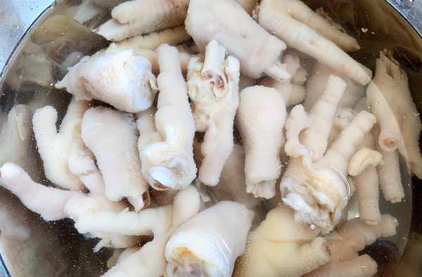 3、把煮好的雞爪撈出放入冰水中浸泡,這樣可以讓雞爪更加的有彈性。