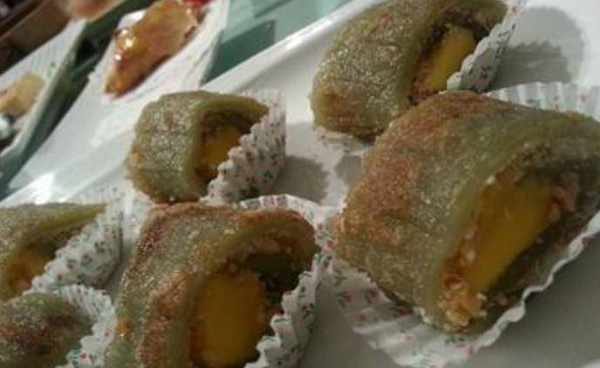 第一個薄撐,這個是廣東的一種特色小吃,它是用糯米做成的,在做以前裡邊是根本就不需要添加任何香料的,也隻是單純的一塊糯米,吃起來也是甜甜的感覺,但是現在為瞭能夠滿足人們的需求,薄撐也是做出瞭各種各樣的創新在裡邊,也是加入瞭其他的輔料瞭。