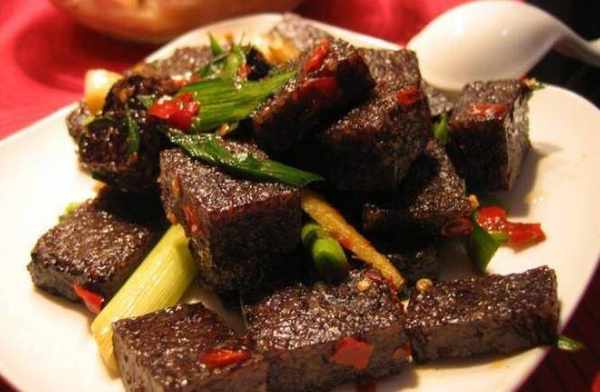 第三個豬血糕,其實在看到這個小吃的時候,我也是非常的好奇,到底這個是怎麼樣的一種小吃呢,所謂的豬血糕就是在豬血的裡面再加上糯米,凝固以後蒸熟就可以吃瞭,吃豬血糕的吃法,也是多種多樣的,蘸醬和吃火鍋的時候都是可以吃的。
