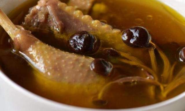 4、將紅棗、熟地黃、黨參和枸杞加入煮好的鴿子湯中,加入約2000毫升水,再燉煮一個小時左右,然後取出藥材。