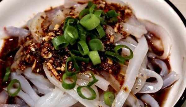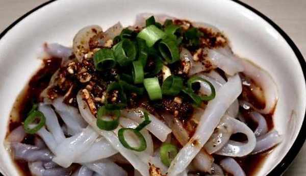 【原材料】:豌豆淀粉500克、黃瓜絲、食鹽、蒜末、芝麻醬、香油、香醋、辣椒油、蔥花。