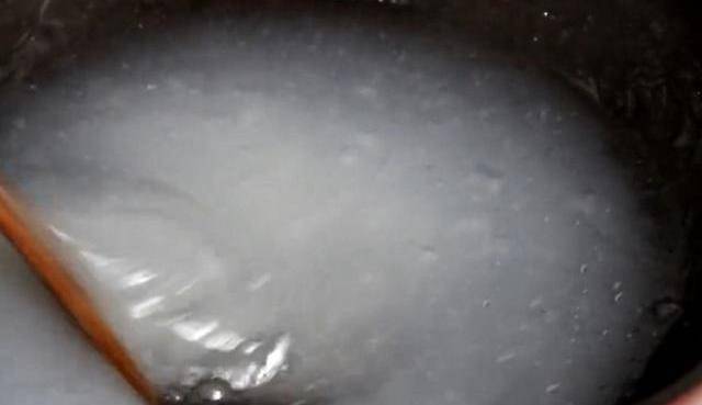 2:在鍋裡倒上清水2500毫升,加上淀粉糊裡面500毫升清水,一共是3000毫升,水和豌豆淀粉的比例是6:1,按照這個比例放就可以。