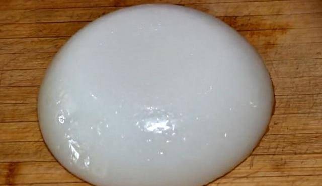 第三步:把淀粉糊攪拌到粘稠透明狀時,準備一個模具,把淀粉糊倒進去,晃動一下模具,使淀粉糊的表面自動流平,先把淀粉糊常溫下晾涼,然後放在冰箱冷藏1晚上。