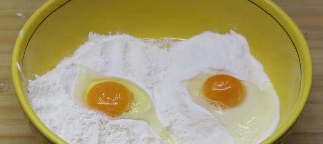 1、準備150克的糯米粉和150克的面粉,準備好之後,把它們加到一個大盆中,在面粉中打入一個雞蛋,在糯米粉中也打入一個雞蛋。把兩種幹粉攪拌到一起,然後把雞蛋攪散,要一直攪拌,攪拌到面粉呈現一種小顆粒絮狀的時候就可以瞭。