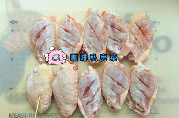 雞翅背面劃兩刀,正面用牙簽猛紮三七二十一下,泡入清水中,反復揉搓揉搓,換幾次水,清洗幹凈,瀝幹水分。