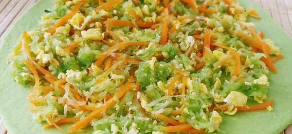 1.將所有的食材都準備好,黃瓜用鹽搓洗幹凈表面,然後用刮刀把黃瓜皮刮下來,不要丟,放入碗裡備用。黃瓜去掉兩端,然後用擦刀擦成絲,裝入盆裡。胡蘿卜也擦成絲,一起放入盆裡。再放入少許鹽,抓拌均勻,醃制10分鐘,把水分醃制出來。