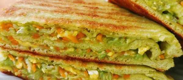 6.電餅鐺提前預熱好,刷一層食用油,把餅胚放進來,再在面餅上刷一層食用油,防止水分流失。然後蓋上電餅鐺蓋子,選擇餡餅模式,燜上6分鐘。時間到,揭開蓋子,陣陣清香撲鼻而來。這個黃瓜面餡餅已經變得鼓鼓的瞭,按壓能夠立即回彈,表示已經熟瞭。