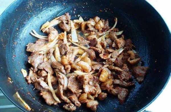 3、可以不加油,要用特別厚的鍋炒,主要是用鍋的熱量反復翻炒,要速度快在,這樣炒烤肉好吃鮮美鮮嫩
