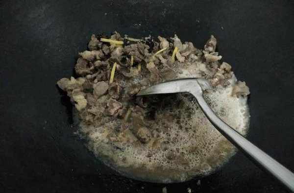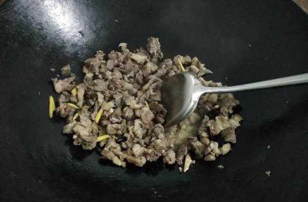 鍋裡燒熱瞭油,直接把狗肉下鍋炒香。