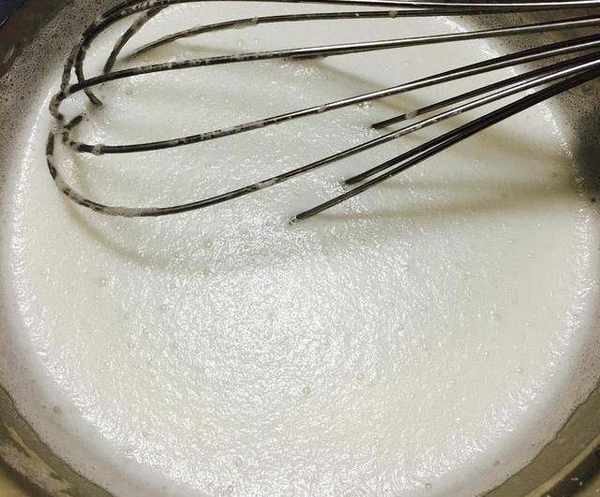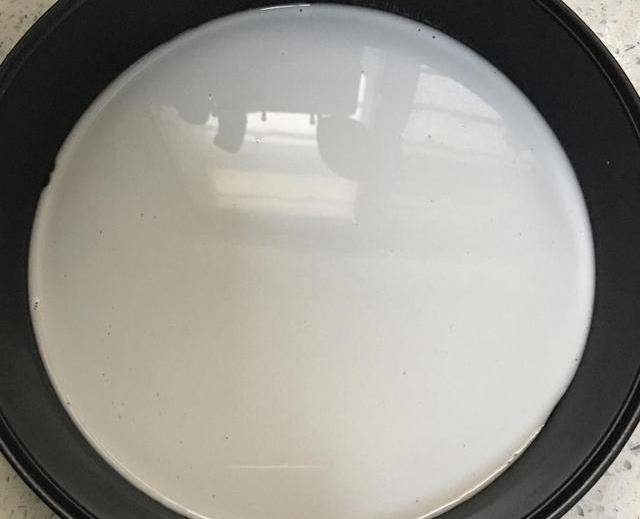 第一步:小麥淀粉和水混合攪拌均勻,淀粉和水的比例是1:2,邊倒水邊攪拌,攪成細膩的沒有顆粒的面糊,攪勻之後加上一小勺食鹽攪拌均勻,增加筋性和透明度,再次攪拌均勻,然後篩掉表面的氣泡備用。