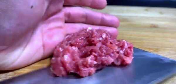 一小塊的瘦肉,先切成薄片,再改刀切成細絲,最後切成小碎丁,裝入碗中。