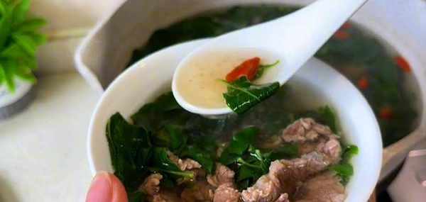 幾粒枸杞,一點點蔥花,攪拌均勻,牛肉枸杞葉湯就做好瞭,味道非常清甜,營養又健康。