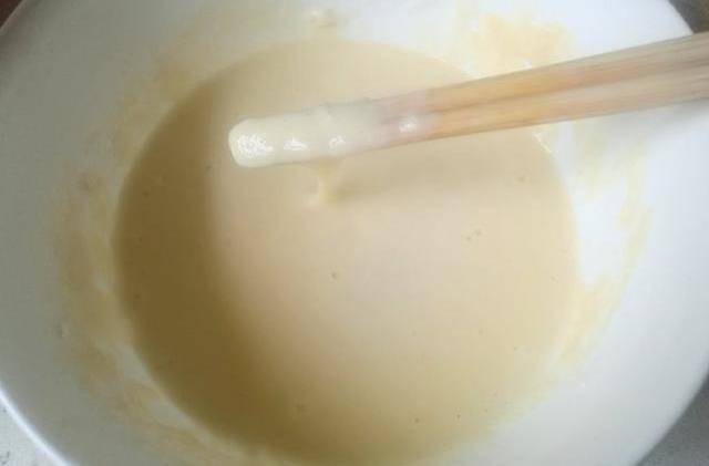 3、雞蛋和100克面粉放入碗中,放入適量的清水,調至面糊能掛住筷子即可。放水的時候慢慢地加入,這樣好把握好濃度。