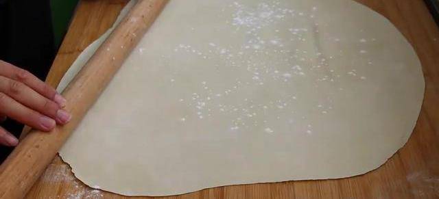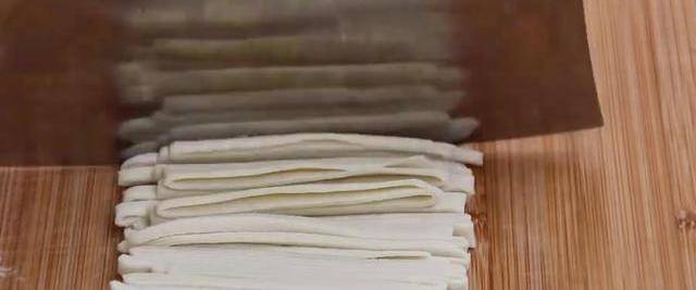 期間要多揉幾次,形成更多面筋。想要面條勁道好吃,最後醒好的面不要揉,取出來後直接搟開,面板上撒幹面粉防粘。搟成狀卷柱面片,兩手從中心位置向外推卷,如此幾次後將其展開。撒上薄薄一層面粉防粘,反復操作以上步驟。