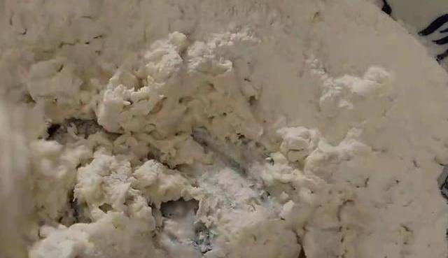 盆中倒入500克面粉,添加5克酵母粉,再添加少許白糖促進發酵,用260毫升溫水和面,加邊邊攪拌,攪拌成這樣的大面絮,下手揉面,揉成不沾手不沾盆的光滑面團就可以瞭。蓋上鍋蓋,放在溫暖的地方發酵一小時,小碗中加入兩大勺白糖,再添加兩勺面粉,攪拌均勻。