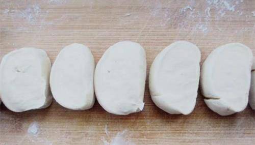將準備好的300克的面粉放到盆中,加入3克鹽,慢慢往裡面加溫水。一邊加一邊攪拌,攪拌成絮狀,然後揉成光滑的面團。將光滑的面團放到案板上面,整理成長條,再用刀切成一個個小劑子。