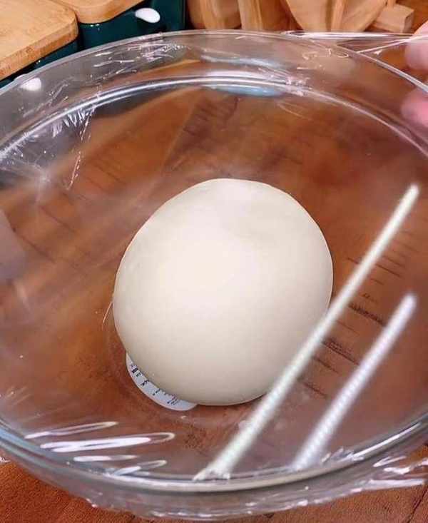 第二步:把碗中的面絮揉成面團,醒發至兩倍大。