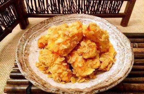 第五步:然後把煮好的南瓜條放入面粉中裹一圈。