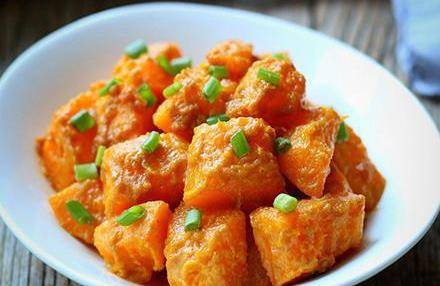 蛋黃焗南瓜是一道特色名菜,屬於粵菜或蘇菜,是用南瓜與蛋黃炒制而成的一道外咸裡甜、外酥裡糯的菜品。是許多飯館酒店菜單上常見的美食,烹制方法不算復雜,也適合居傢烹飪。