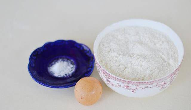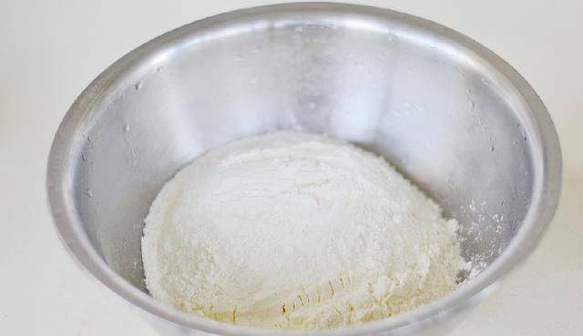 2:盆裡倒入鹽,面粉。