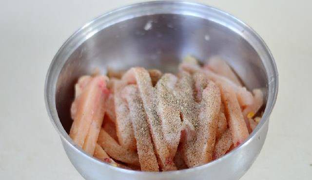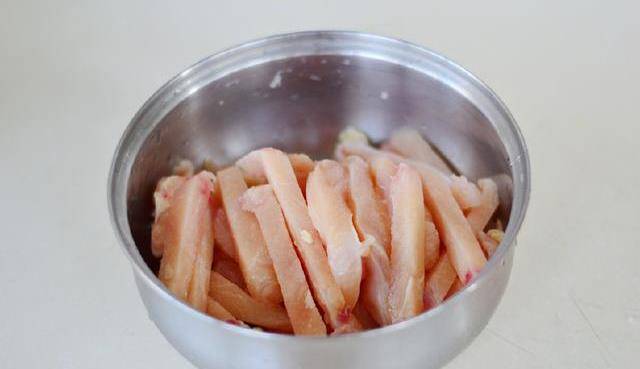 一般做雞柳選擇的都是雞胸肉,這個部位的肉吃起來比較嫩,又沒有骨頭,用它做雞柳可以說是非常的省事瞭。