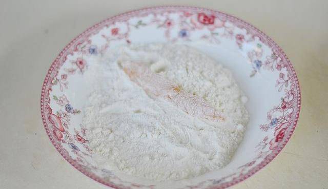 7:雞柳先在面粉裡裹上一層面粉。