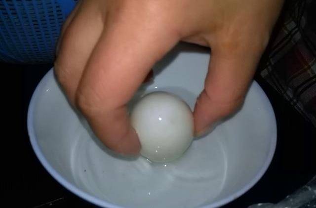 擦幹水分的鴨蛋放到一個大碗裡,然後我們在碗裡加入適量的白醋,白醋最好能蓋過鴨蛋。白醋裡的醋酸和碳酸鈣產生反應,可以讓蛋殼變軟。白醋浸泡二十分鐘後。