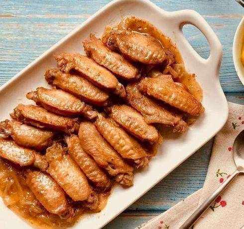 其中添加的水量需要沒過雞翅,再加入自己準備好的啤酒,放入蔥段、薑片和鹽,用大火燒開之後轉成小火慢燉二十鐘左右,等鍋內湯汁變得粘稠,把火候轉成大火,收汁,香噴噴的啤酒雞翅就可以出鍋食用瞭。