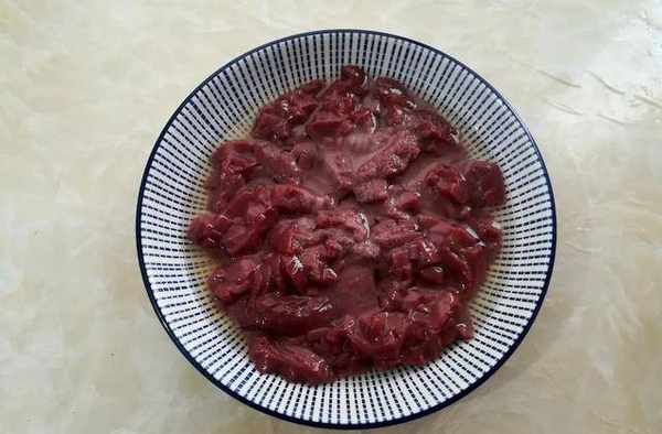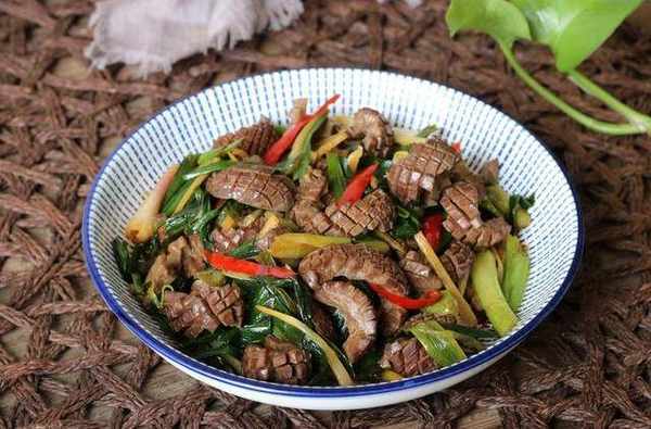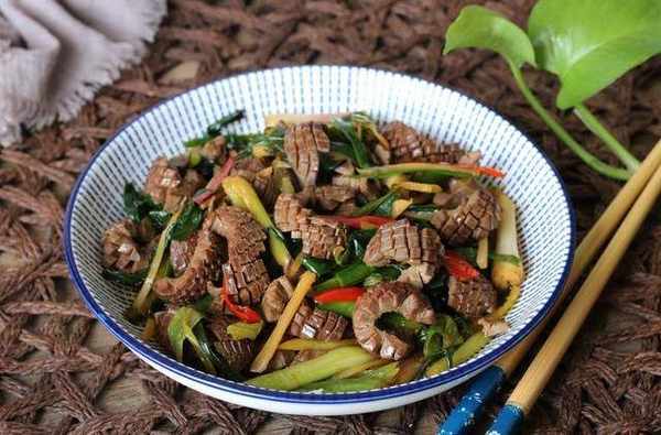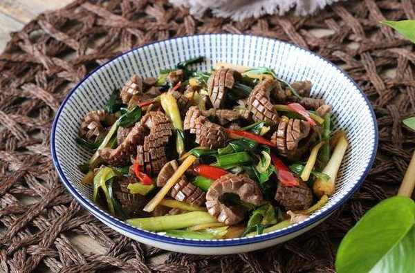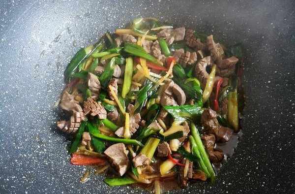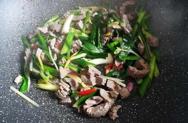 第八步:放入焯過水的豬腰子發貨翻炒半分鐘左右,時間不要太長。