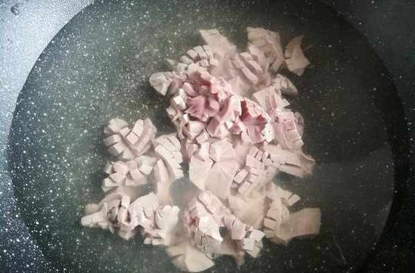 第五步:燒一鍋熱開水,放入豬腰子焯水,變色後馬上撈出來。豬腰子焯水可以節約炒的時間,避免炒的時間過長。這是豬腰子不腥不臊,香嫩下飯最關鍵的第2步。