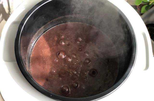 6.吉柏尼電壓力鍋帶有“火鍋”功能,火力自由選擇,我用7檔火力,加入紅糖,將紅豆湯煮開