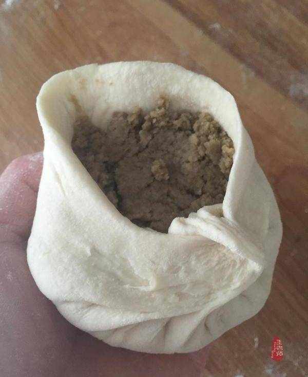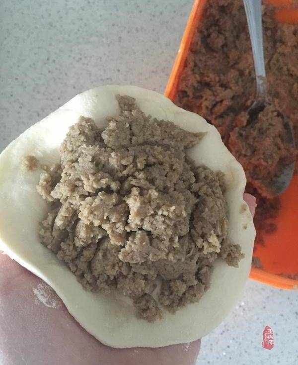 11、把餡料包入面皮中間。