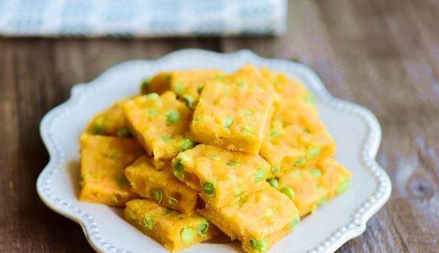 南瓜的營養蠻多的,含有果膠可以起到保護胃黏膜,促進潰瘍愈合。還有膽汁的分泌,加強胃腸蠕動,幫助食物的消化和預防便秘。而這個豌豆呢,它有著豐富的維生素C,具有美白的效果。還含有維生素B族和維生素A可以促進糖分的代謝,排毒養顏。夏天,這糕點必備,我傢三天兩頭就吃,每次上桌傢人都搶著吃。