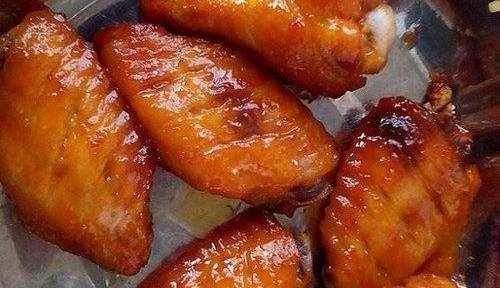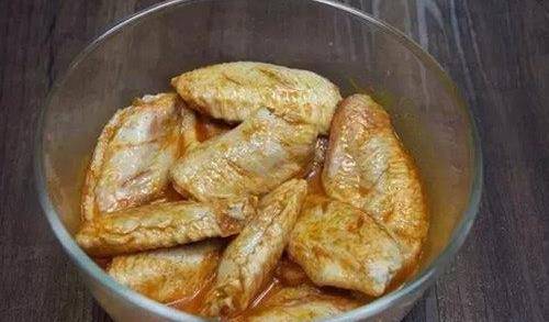 然後就可以放進烤箱烤制瞭。將烤盤送入預熱好的烤箱底層,箱溫150度,約烤30分鐘即成.烘烤中要將雞翅翻一個兒,使烤均勻,色澤一致。