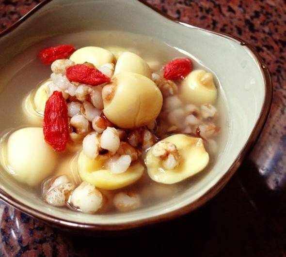 2:芡實:又稱芡實米,雞頭米,味甘澀,性平,無毒,入脾、腎經,具有固腎澀精、補脾止泄,利濕健中之功效,主治腰膝痹痛、遺精,小便不禁,大便泄等等