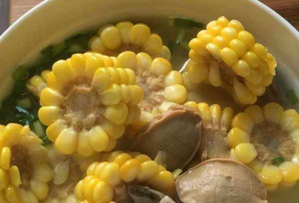 鮑魚玉米湯:水發鮑魚放入沙鍋慢火燉四小時以上;加入熟肚片、玉米片、適量的黃酒繼續燉1小時;加入適量的鹽、蔥花拌勻即可。這道靚湯有鮑魚的鮮美,再加上玉米的清甜口感,讓整道美食變得非常美味。