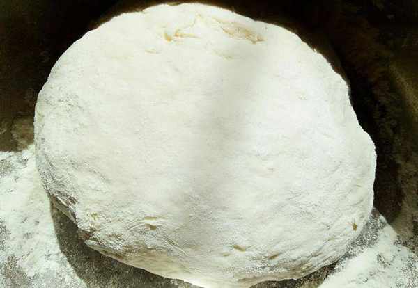 面板上撒一層幹面粉,將發好的面取出揉搓排氣,整成一個長條,切成大小相等的面劑子;然後一個一個揉成圓形的面劑,再搟成一個圓形的薄片;