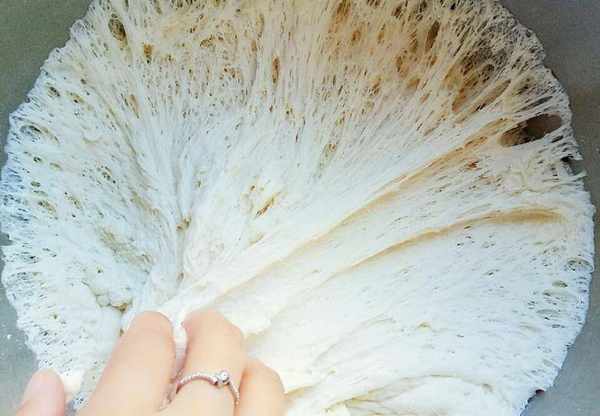 今天陽光很好,40分鐘面就發好瞭,發好的面裡面全是蜂窩狀,很蓬松;