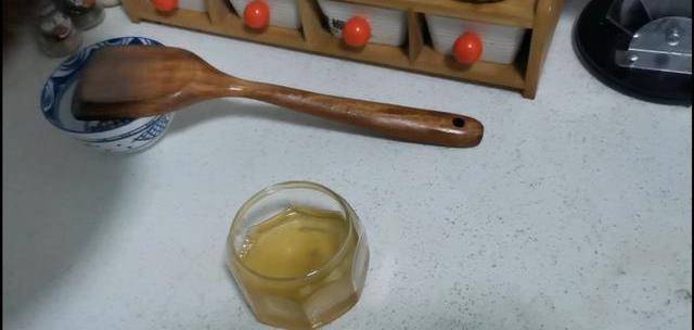 5、把熬好的豬油倒入幹凈無水的容器中,加一勺鹽,就完成啦,我們把豬油靜置就好瞭!