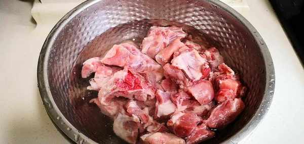 排骨啊斬成麻將塊的大小,新鮮的排骨不需要焯水,用清水多清洗幾遍,控幹凈血水即可,然後切上點蔥薑八角花椒,準備點幹辣椒,再準備嫩玉米,剁成大塊,接下來開始上火制作,