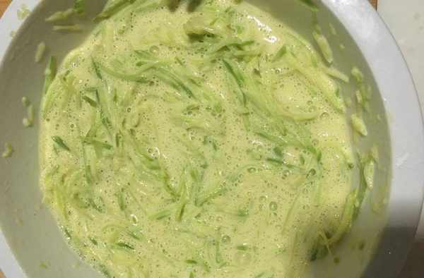 (5)再加少許的水拌勻,加面粉拌勻,成糊狀;