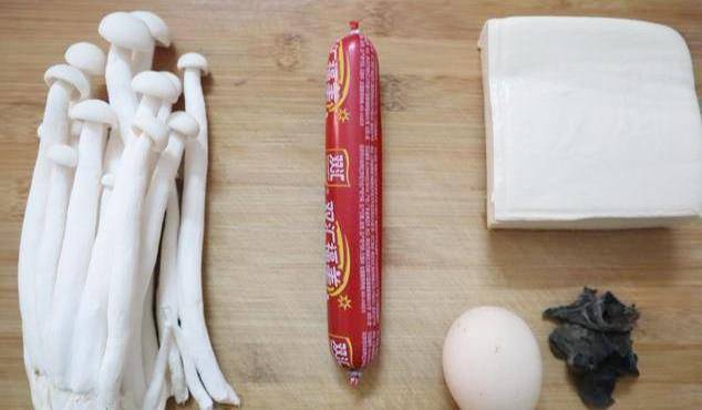 1.海鮮菇、嫩豆腐、鮮雞蛋、幹木耳、火腿