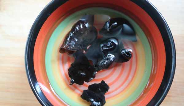 1.幹木耳清水泡發,泡五分鐘就行瞭;